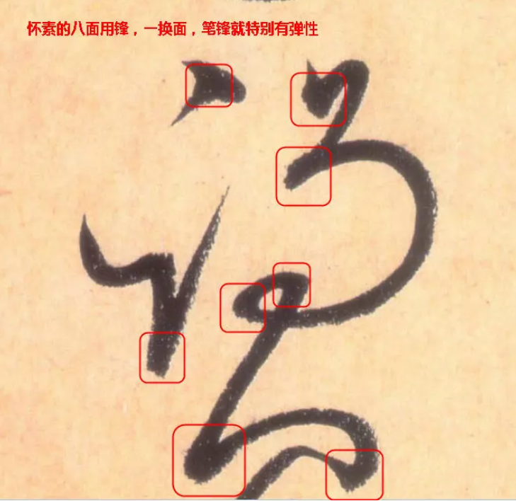 另外,有人為八面出鋒,就不是遵循中鋒運筆的原則了,這是對八面出鋒的誤解和對中鋒的片面理解。很明顯,八面出鋒有利於在筆畫換向時保持中鋒。