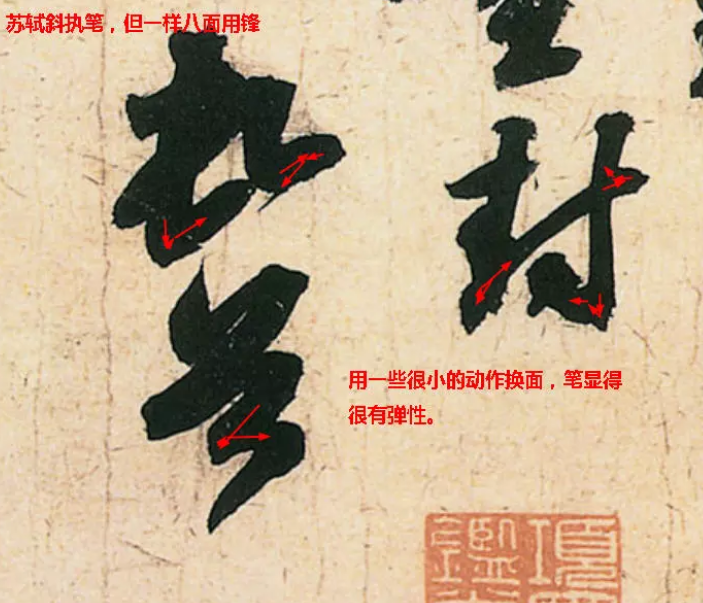 八面用鋒,指運筆轉向時,隨向換用相應的筆面著紙運行。