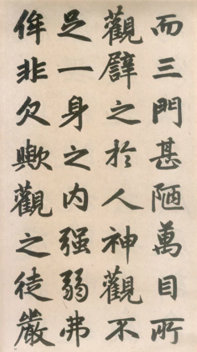 劉熙載《書概》說:“張文史(張旭)書,微有點畫處,意態自足,當知微有點畫處,皆是筆鋒實實到了。不然雖大有點畫,筆心反而不到,何足之可雲!”“大有點畫”指簡單的筆腹按下,能按不能提,提而鋒不立,筆畫再大,也是筆腹形成的虛浮呆滯形象,而非鋒端真力貫注的堅實筆質,細審王羲之行書諸帖,歐陽詢行書,褚遂良《陰符經》,趙孟頫、文征明行楷書墨跡,無不如此。