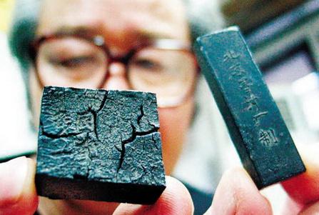 手指輕彈墨錠聽其聲是否清脆,聲音發悶的質量要差些。
